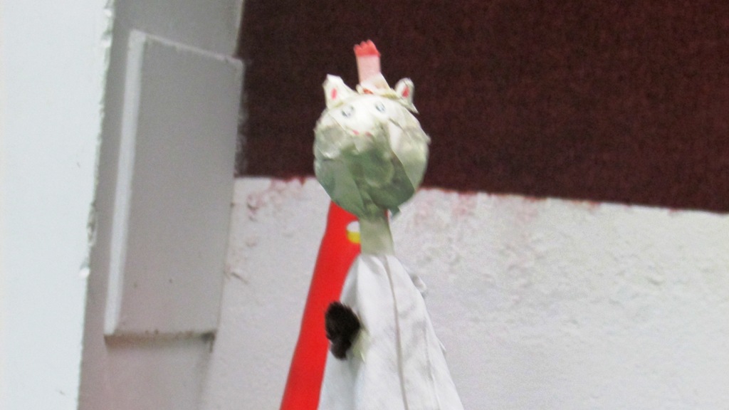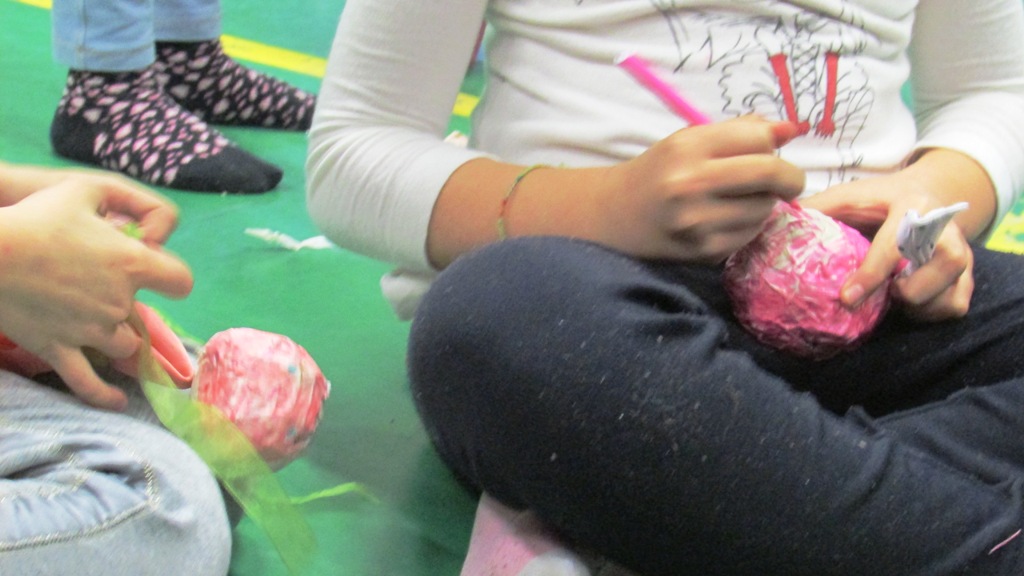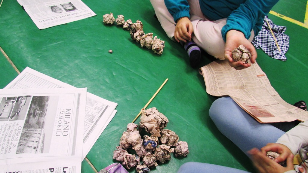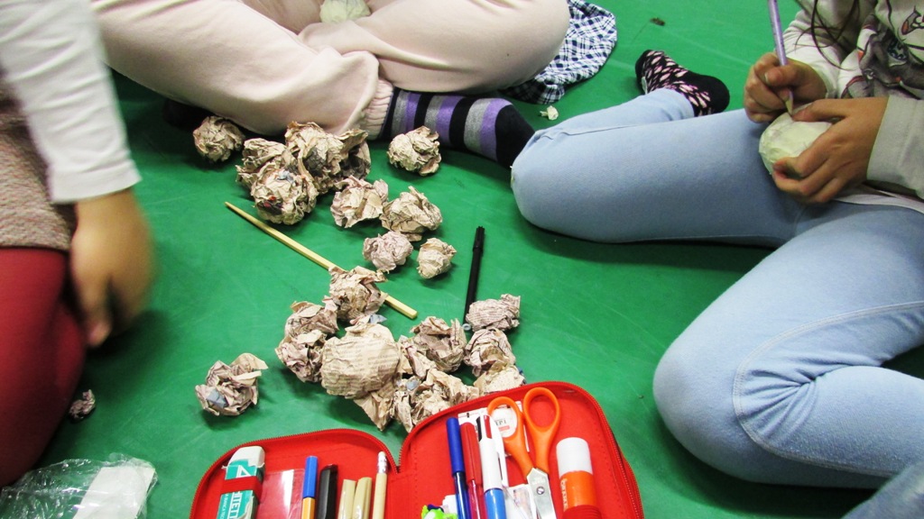 Ed ecco allora i nostri piccoli artisti all'opera: ciascuno di loro, una volta scelto il soggetto e procurato tutto il materiale occorrente (vecchie magliette, carta di giornale, colla, stuzzicadenti, colori, carta gommata adesiva) ha dato vita al proprio personaggio.